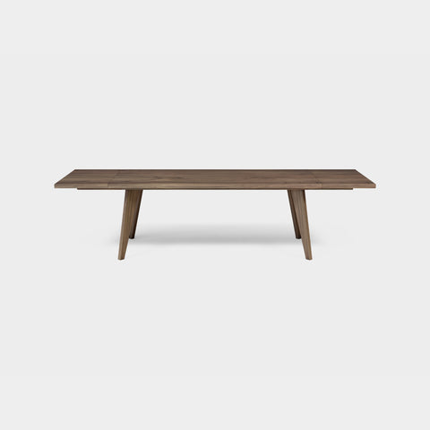 De verlengbladen van onze uitschuifbare tafels van meer dan 300 cm zijn vervaardigd met een houtnerf die loodrecht op het hoofdblad loopt. Dit zorgt voor duurzaamheid en stabiliteit, terwijl het bij uitschuiven een subtiel designcontrast creëert.
