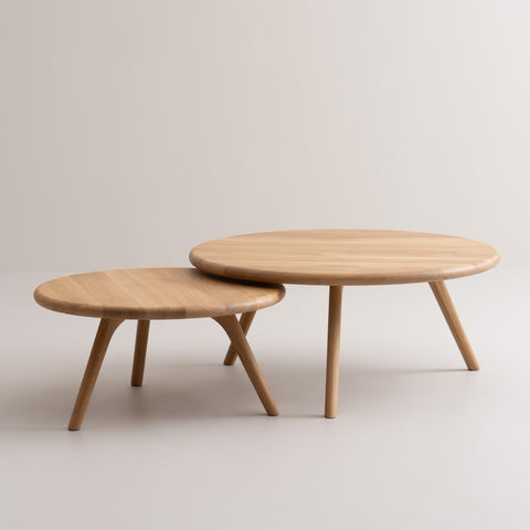 Elk ontwerp vertrekt vanuit een cirkelvormig uitgangspunt — van de vloeiende silhouetten van de nesttafels en eettafels tot de subtiel afgeronde randen en hoeken. Dit zorgt voor een uitnodigende, toegankelijke uitstraling die moeiteloos past in elke ruimte.
